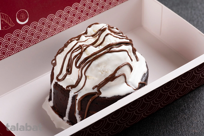 Chocolate fondant, also known as moelleux au chocolat, , baked exterior and a molten, liquid chocolate.