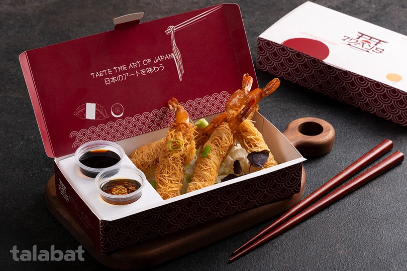 Shrimp Kunafa featuring succulent prawns wrapped in thin, crispy strands of kunafa pastry . This fusion dish is celebrated for its contrast between the crunchy exterior and the tender, juicy shrimp inside