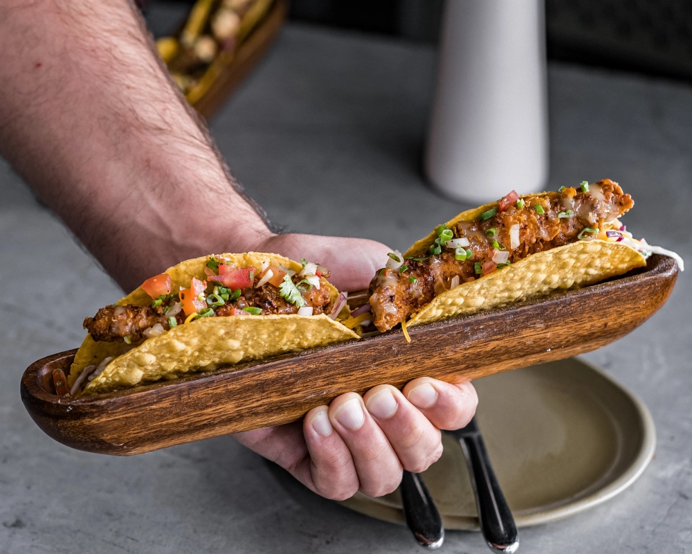 cheddar, slaw, cilantro, ponzu pico de gallo