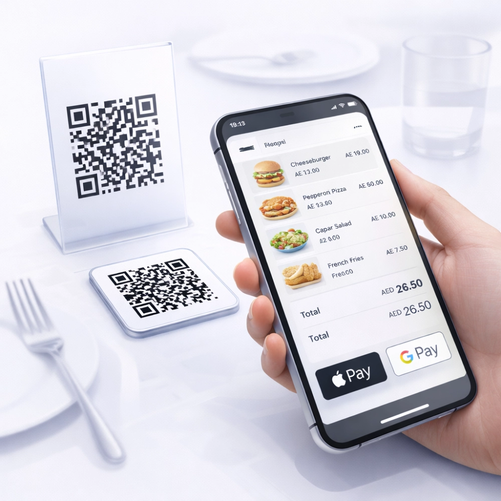 The Ezi-Pos Table QR Menu System brings modern contactless dining to restaurants, cafés, and food courts across Dubai, Abu Dhabi, Sharjah, Kuwait City, and GCC. Customers simply scan a QR code placed on the table to access the restaurant menu instantly on their smartphone.
