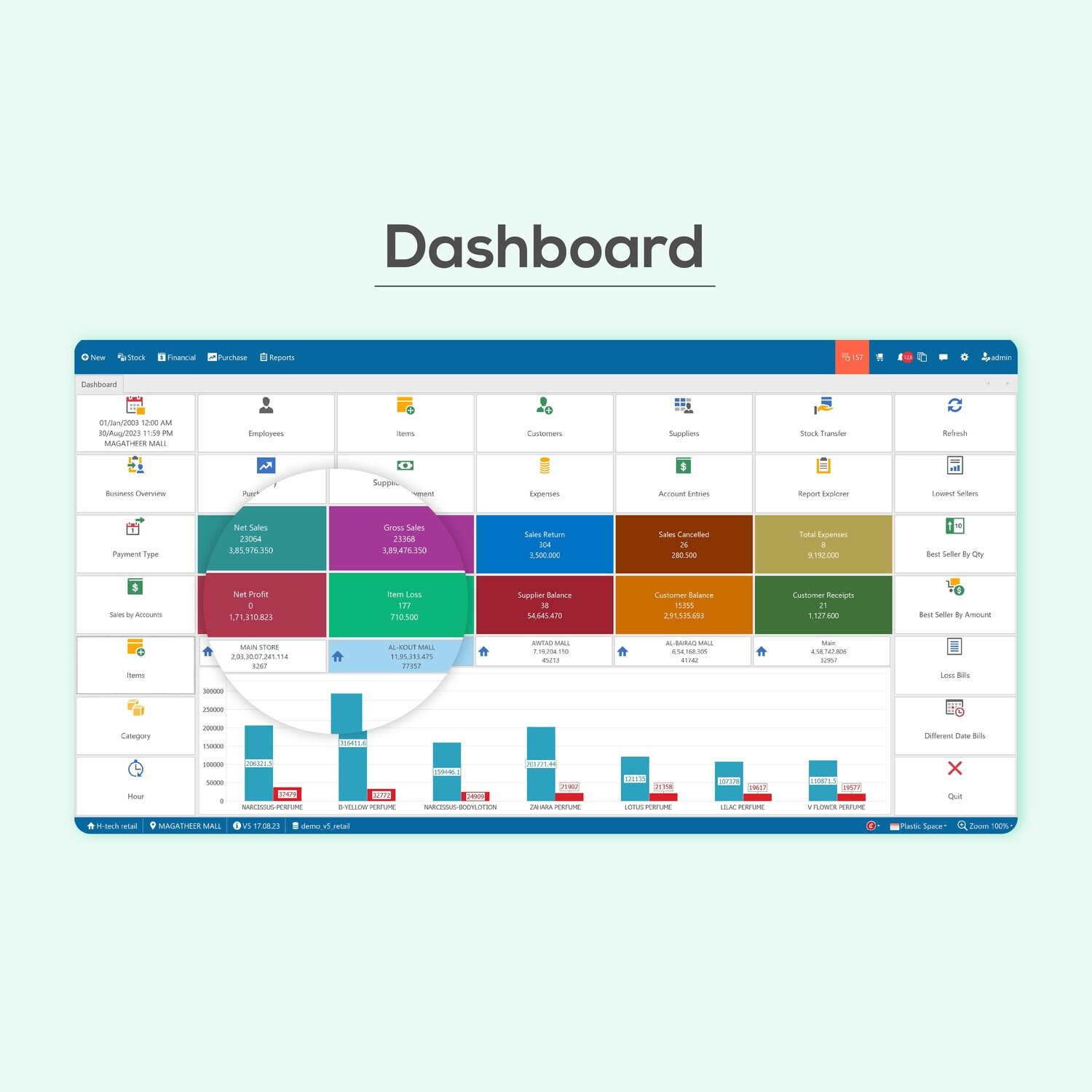 - Understand your expenses, profits, and sales, and also display them in graphical form.