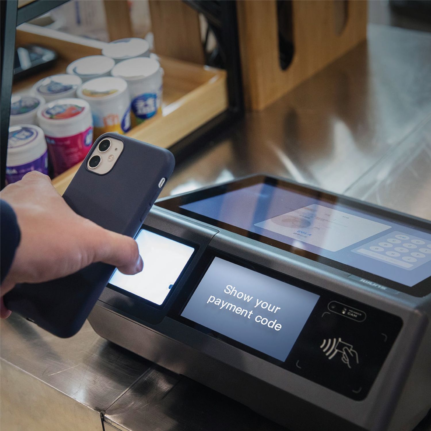 Pay through a scanning code.