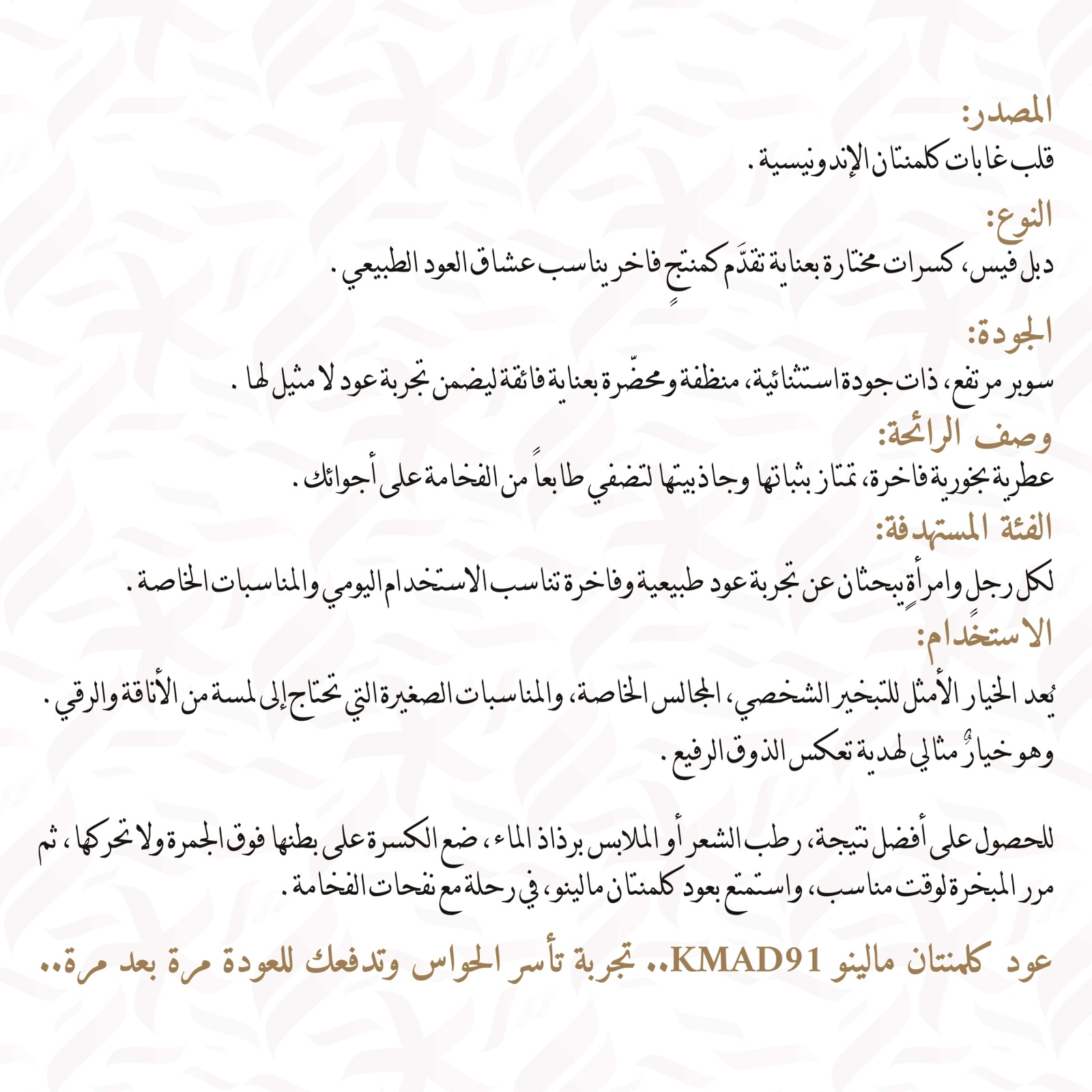 لكل رجلٍ وامراةٍ يبحثان عن تجربة عود طبيعية وفاخرة تناسب الاستخدام اليومي والمناسبات الخاصة..