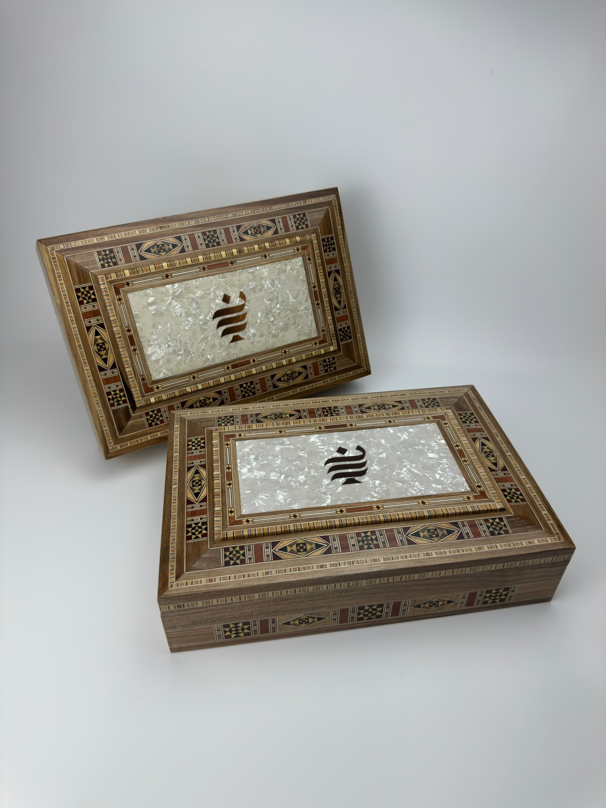 - تصميم يعكس التراث الدمشقي العريق، ليكون أكثر من مجرد صندوق، بل تحفة تضيف لمسة ملكية إلى مقتنياتك..
