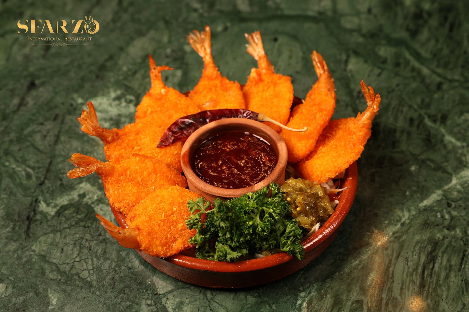 Served with spicy chili sauce.