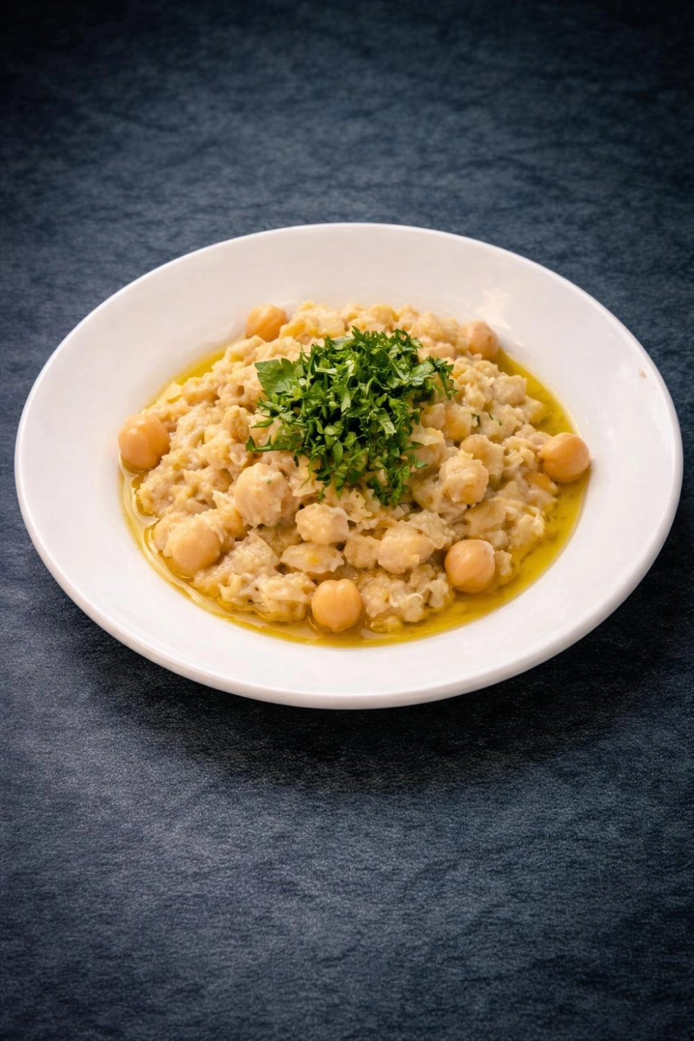 Mashed Hummos with Tahina , Lemon , Garlic & Olive Oil