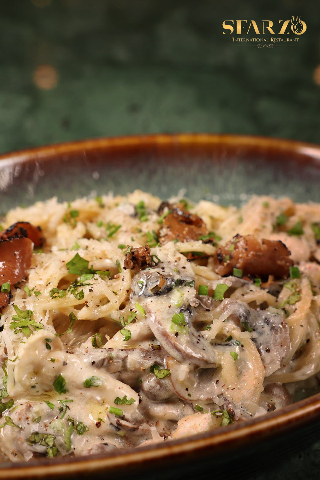 Truffle sauce, mushroom, parmesan, fresh truffle (on top).